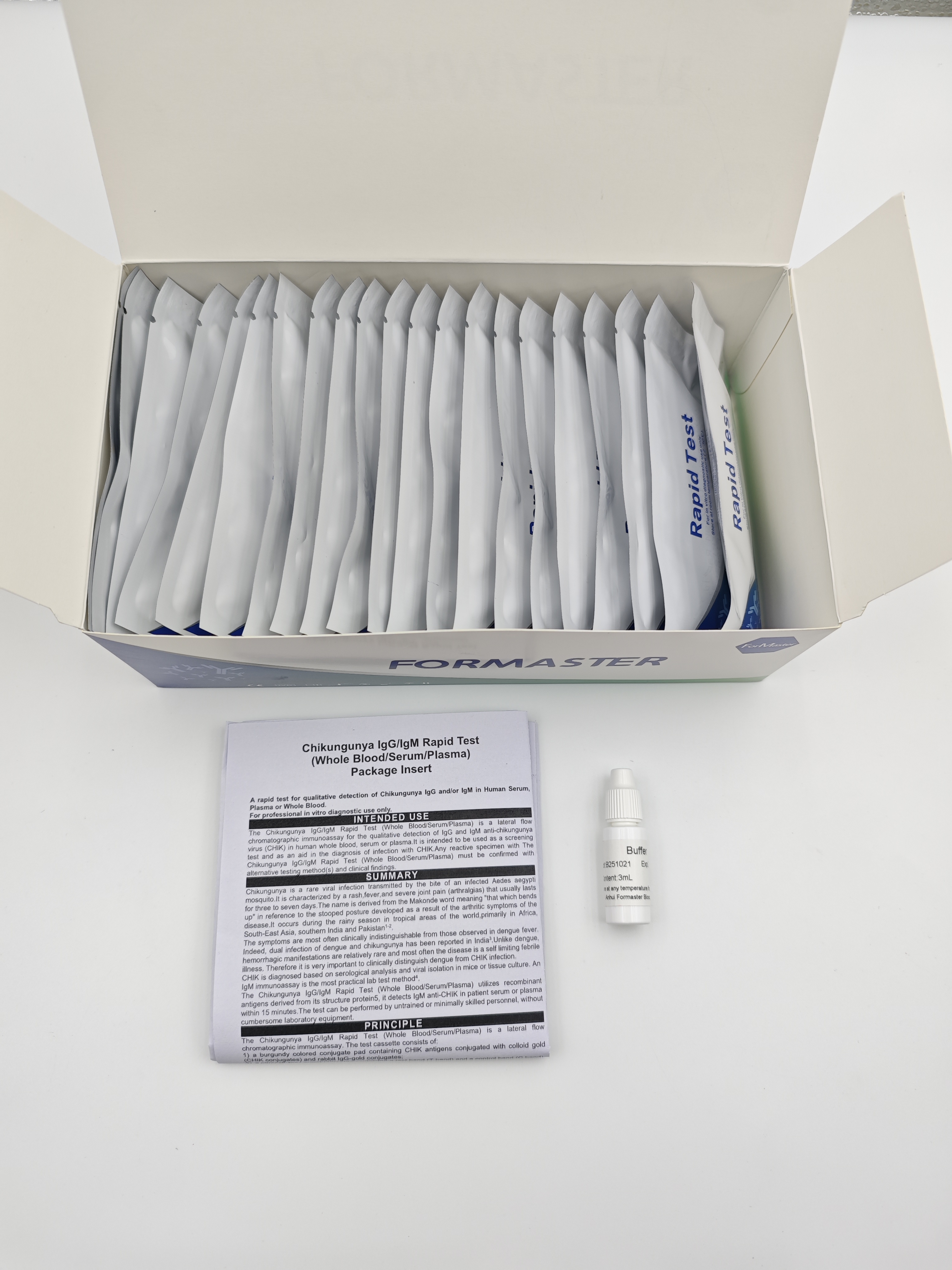 The Chikungunya IgG/IgM Rapid Test (Whole Blood/Serum/Plasma) is a lateral flow