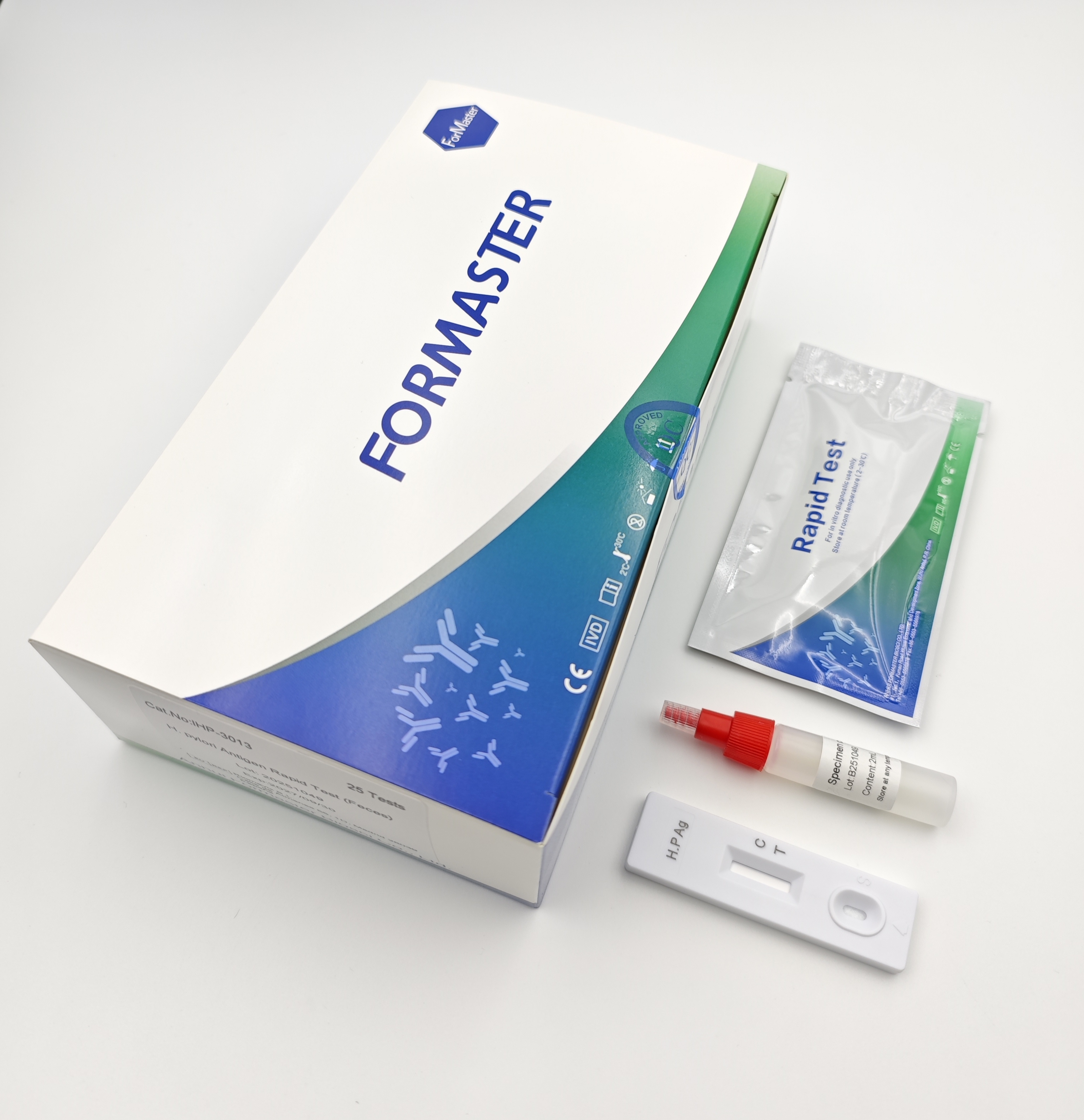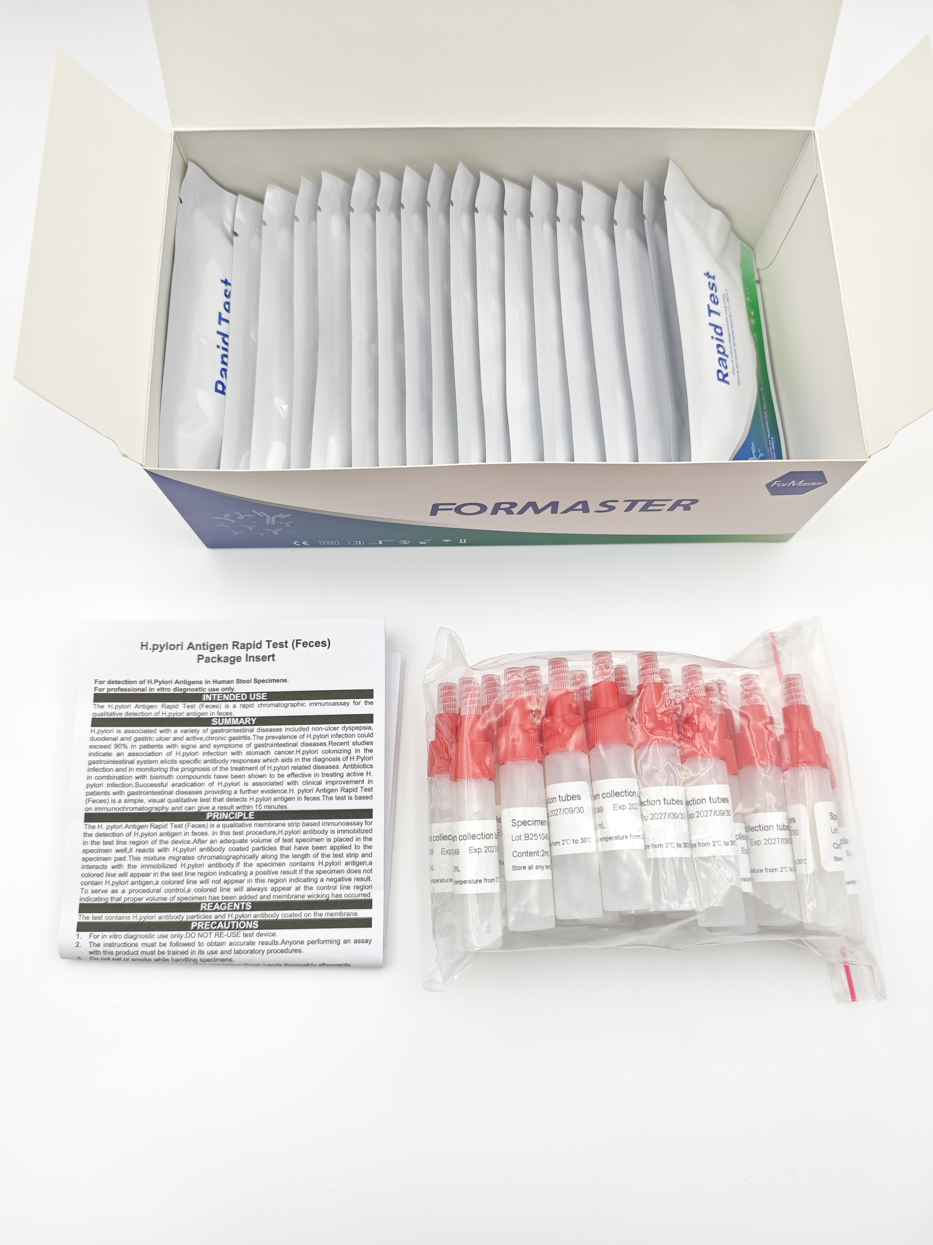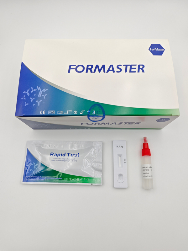 The pylori Ag Rapid Test is a lateral flow chromatographic immunoassay for qualitative detection of H. pylori antigen in human fecal specimen. It is a noninvasive diagnostic method and can be performed within 10 minutes by minimally skilled personnel, and without the use of laboratory equipment. This test is intended to be used by professionals as a screening test and provides a preliminary test result to aid in the diagnosis of infection with H. pylori.