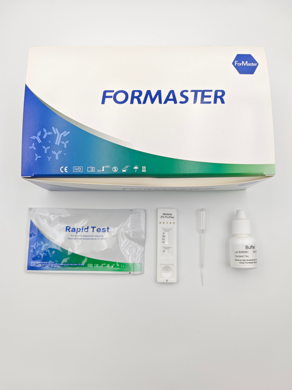 The Malaria PF/PV/PAN Rapid Test (Whole Blood) is a rapid chromatographic immunoassay for the qualitative detection of three kinds of circulating plasmodium falciparum P.falciparum(P.F.), P.vivax(P.V.) and Pan-LDH(PAN) in whole blood.